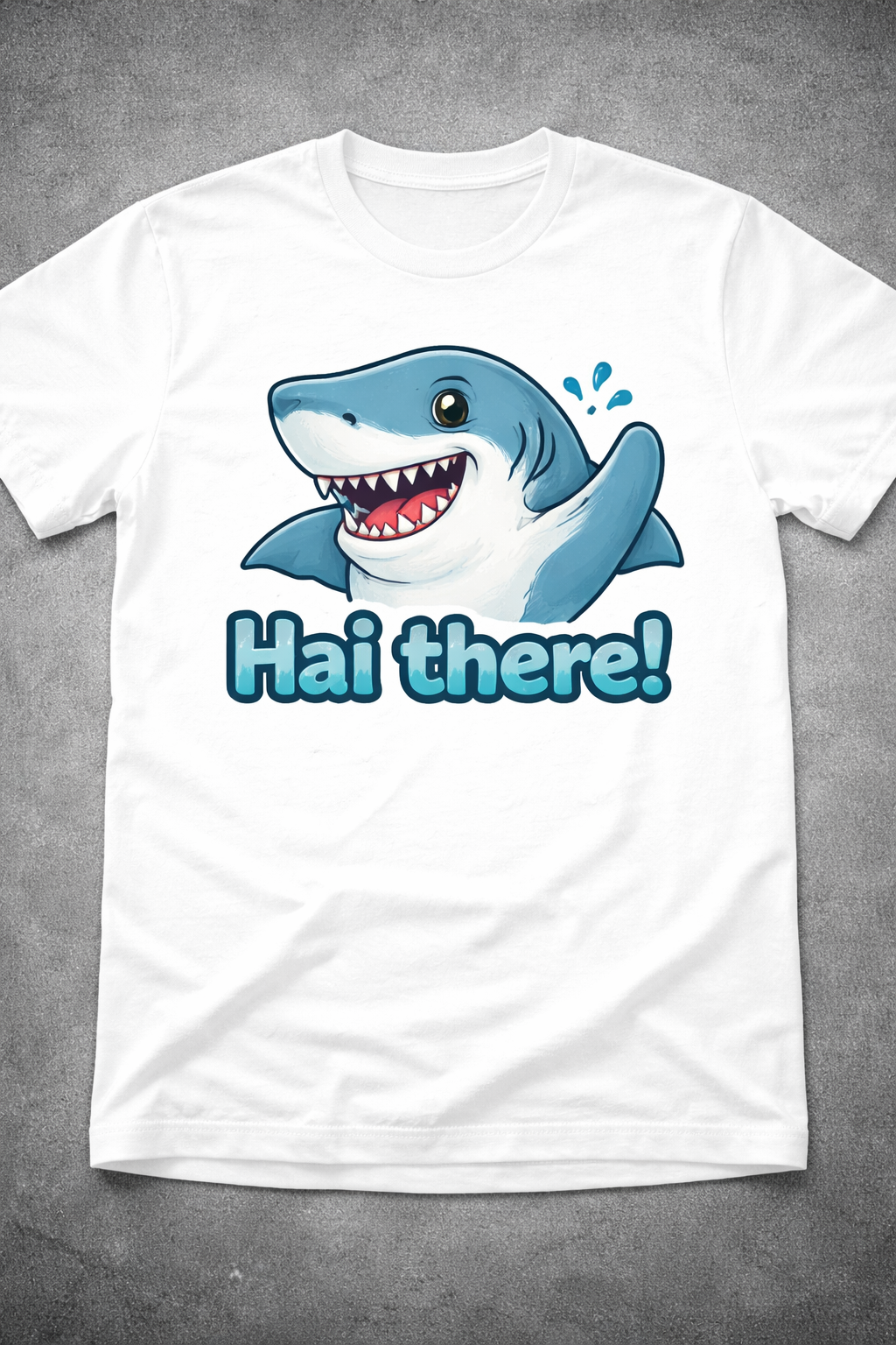 Dieses witzige „Hai there!“ T-Shirt bringt garantiert gute Laune. Das freundliche Hai-Motiv kombiniert mit dem humorvollen Wortspiel macht das Shirt zu einem echten Hingucker. Der niedliche Cartoon-Hai sorgt für einen maritimen Look und ist perfekt für alle, die das Meer, Haie oder lustige Designs lieben.