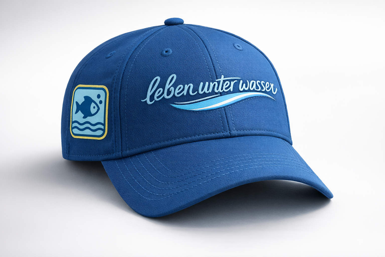 Setze ein Zeichen für den Schutz unserer Ozeane mit der „Leben unter Wasser“ Cap. Die hochwertige Kappe überzeugt durch ihr modernes Design und die detailreichen Logos, die das Thema Unterwasserwelt stilvoll darstellen. Auf der Vorderseite befindet sich der Schriftzug „Leben unter Wasser“ mit einer eleganten Wellenform, während seitlich ein stilisiertes Fisch-Symbol die Verbindung zum Leben im Wasser zeigt.